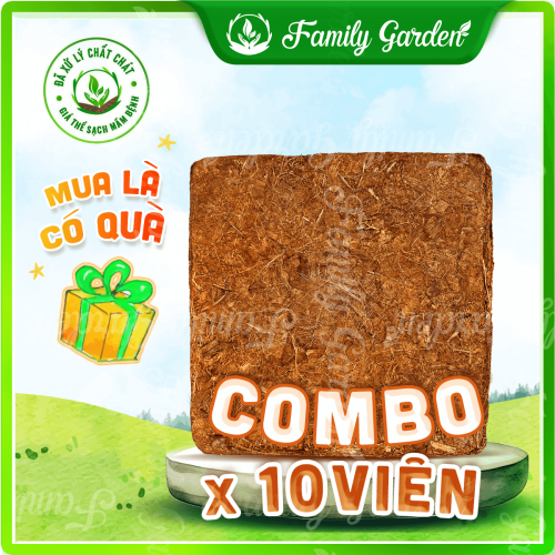Combo 10 viên nén xơ chip mụn dừa 1Kg đã qua xử lý - Giá thể trồng cây | Độc quyền Family Garden